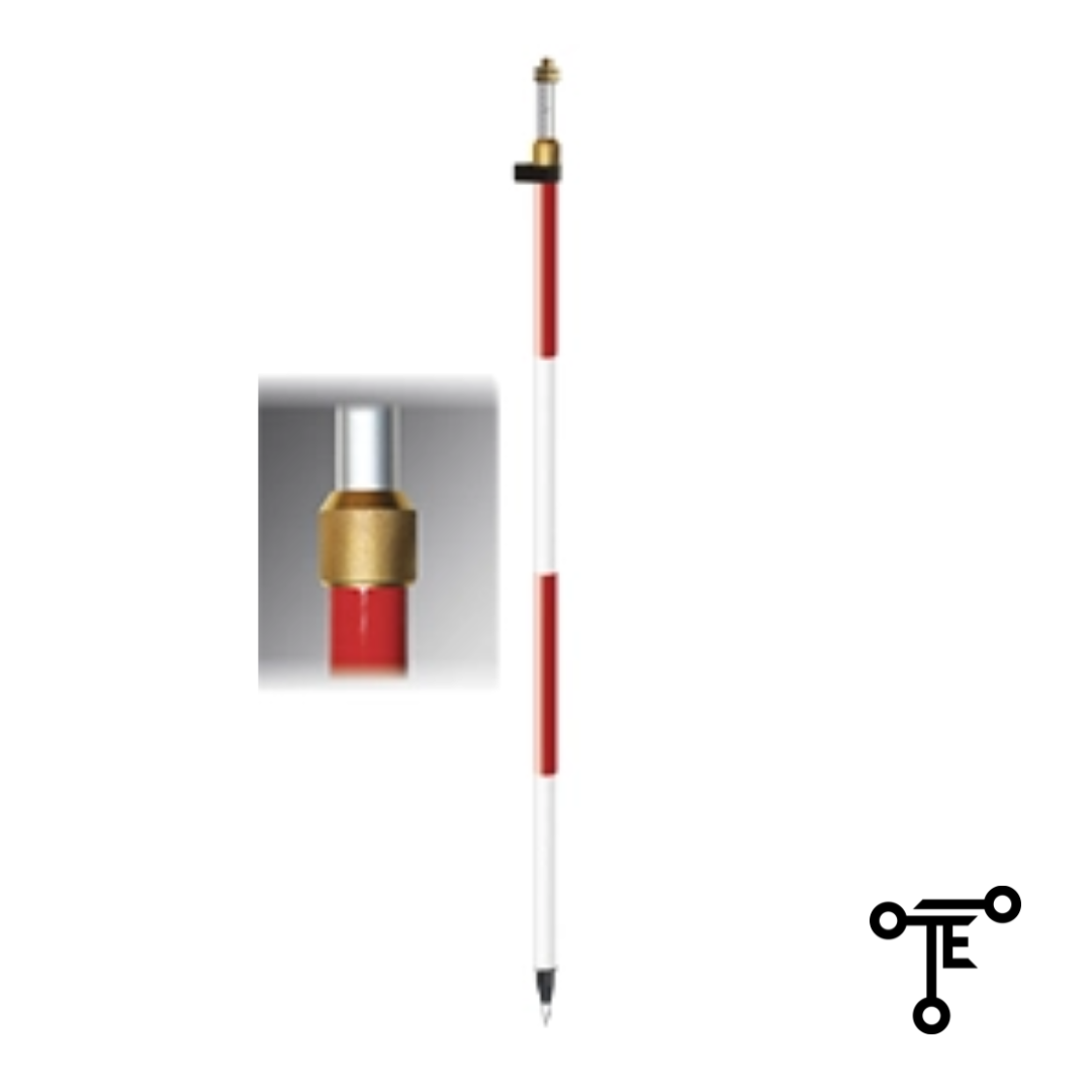 Bastón de aluminio Blanco/Rojo Diseñado para adaptadores QuickTip de 5/8 - 11 Niveleta de 20 Minutos Perilla de goma fácil de apretar y aflojar Funda con correa Graduación: Decimas y métricas Pesa 1.4 Kg Longitud 2.6 metros