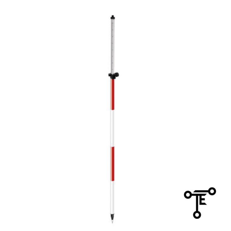 Baston de aluminio Blanco/Rojo Diseñado para adaptadores QuickTip de 5/8 - 11 Niveleta de 20 Minutos Perilla de goma facil de apretar y aflojar Funda co0n correa Graduación: Decimas y métricas Pesa 1.4 Kg 2 secciones Longitud 2.6 metros